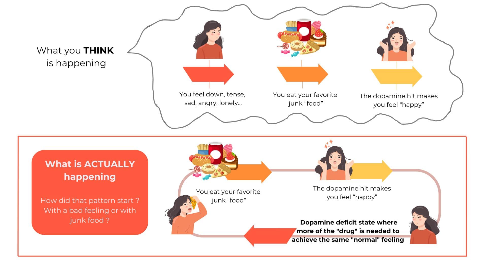 The cycle is addictive. Sugar lights up the brain’s reward system, making it easy to keep eating even when she wasn’t truly hungry.